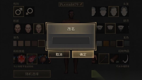 2、然后按自己的喜好定制专属的游戏角色,并选择起始技能和物品;