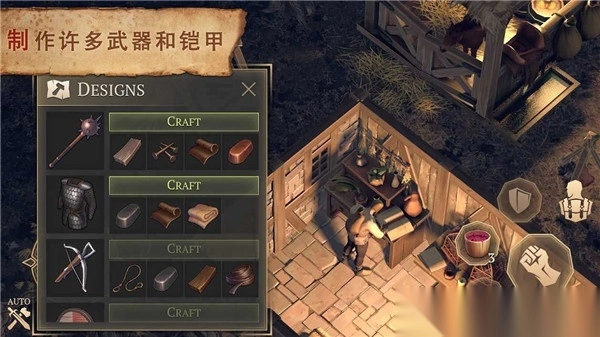建造工作台,制作新资源,发现新设计,创建现实的中世纪武器和铠甲,同瘟疫之地最危险的居民战斗。