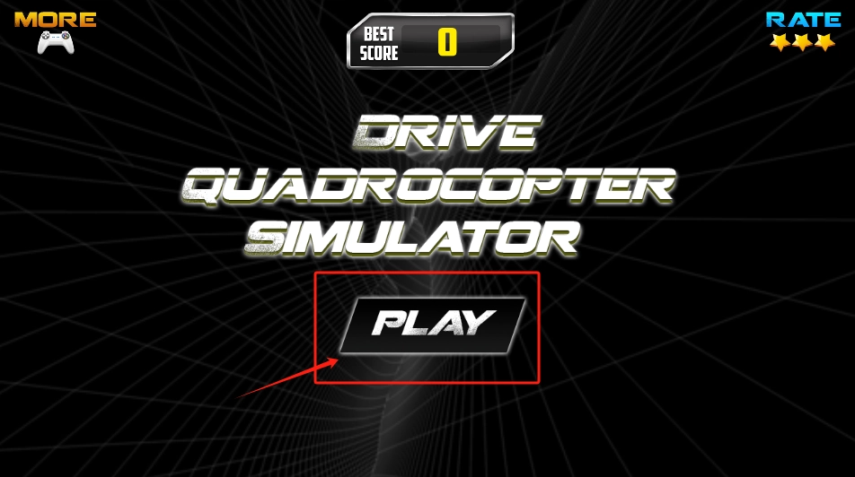 1. 点击中间红色方框内的“PLAY”即可开启游戏,左上方的“MORE”可查看其他游戏,右上方的“RATE”能够进行评分。