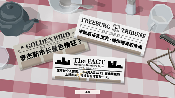 2、设置好后点击【故事】新的游戏即可进入游戏,再依次点击上班