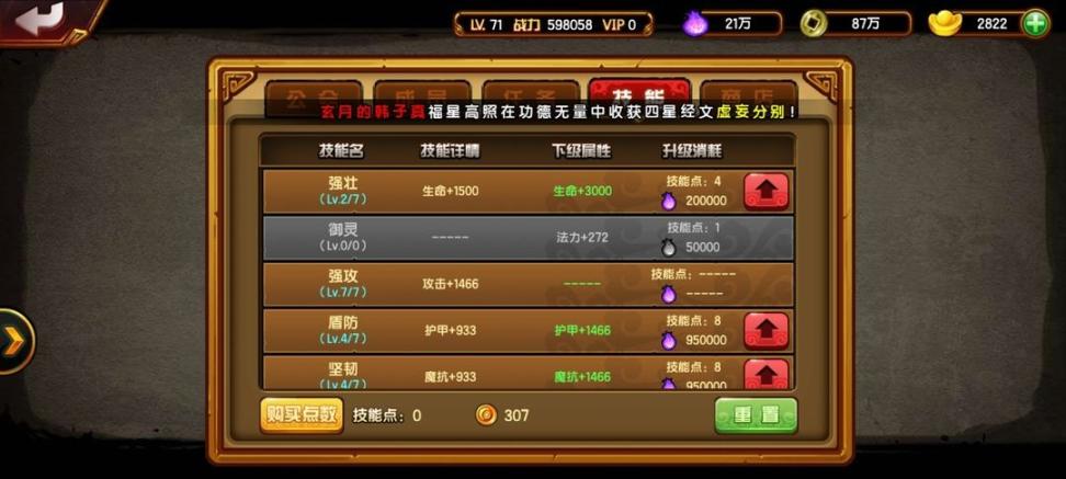 每天捐献10W金币就够了(这可不是白拿你10w金币)捐献金币后会得贡献点,可拿贡献点换技能点