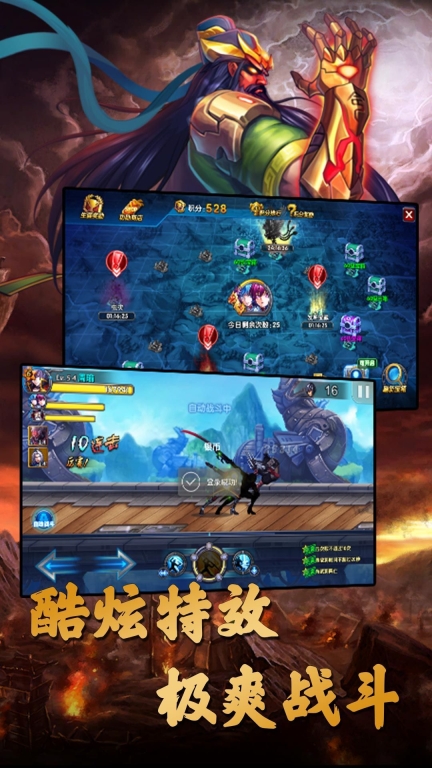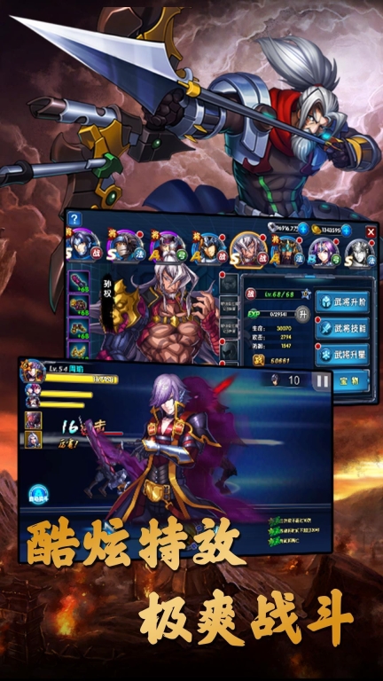 5、三国名将,震撼登场,将你心仪的武将培养至巅峰,化身为神,震撼天地,感动鬼神,体验一夫当关万夫莫开的激爽战斗快感;