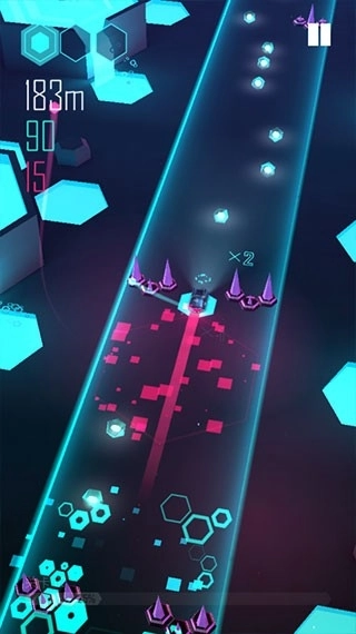 1、收录了大量富有韵律的电音,使玩家可以随着音符快速奔跑。