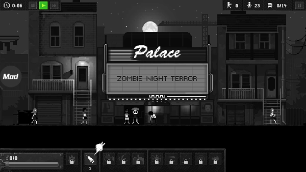 1、该游戏有特别的多的模式,每种模式中还包含特别多的玩法,下面进入第一个知名感染模式,选择电影恐怖夜,这个关卡目标是感染3个人类,然后杀死14个人即可挑战成功,接下来点击绿色的播放键开始游戏吧。