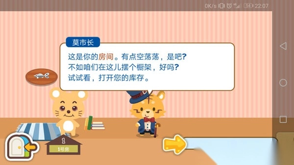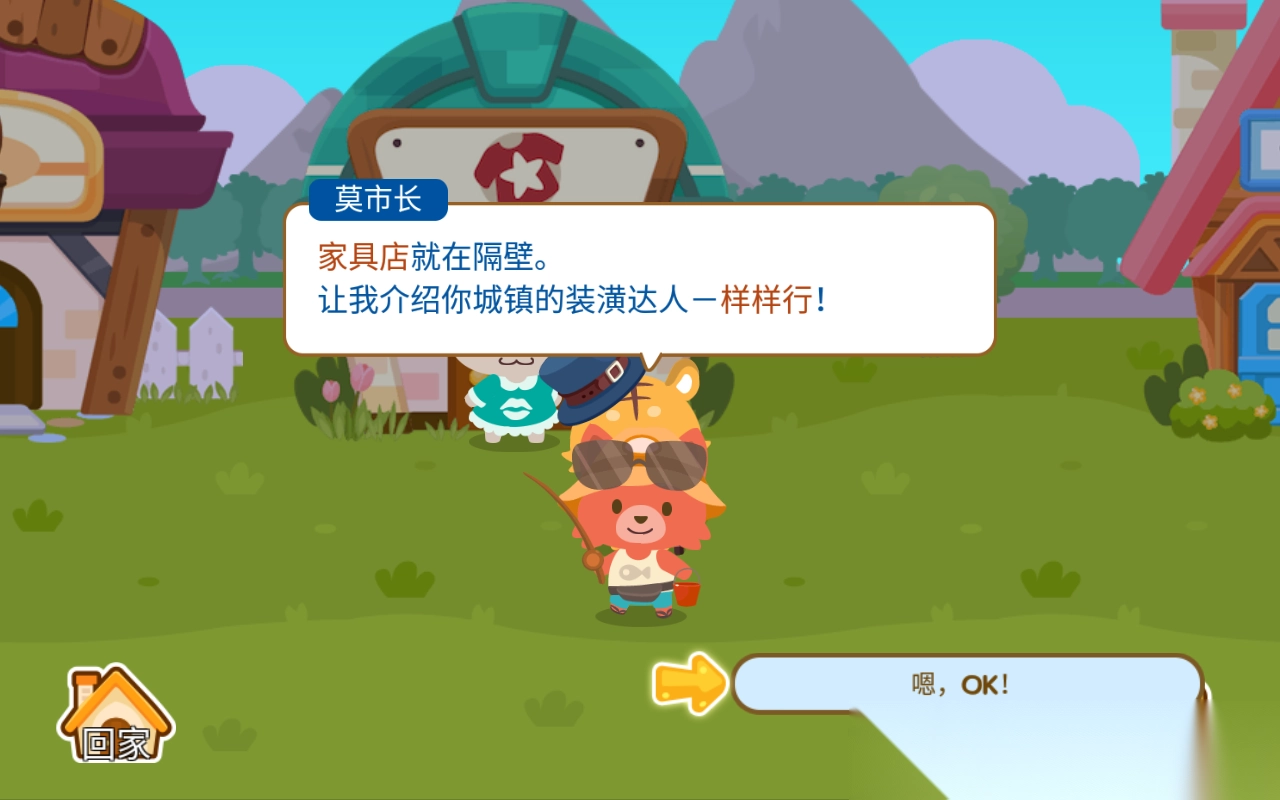 3、在游戏刚开始的时候,会有一位名为“莫市长”的NPC来引导教学任务,帮助你熟悉游戏的操作和系统。游戏前期的小屋看上去比较简陋,不过随着游戏进程推进,你能够逐步解锁各类家具,打造出专属于自己的梦幻空间。