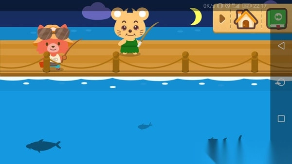 6、当你感到无聊时,点击【鱼】图标,即可前往邻居家附近的河边垂钓。点击河面进行抛竿,待鱼上钩后,再次点击屏幕收线,这样就成功钓到鱼啦。而且有时候,你还能钓到稀有鱼种,给你带来满满的惊喜!