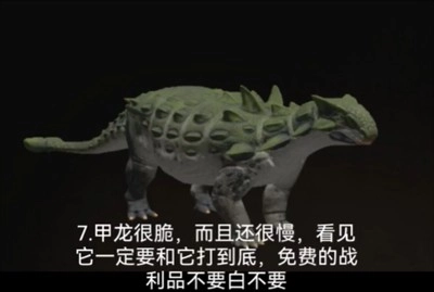 7、甲龙很脆,而且还很慢,看见它一定要和它打到底,免费的战利品不要白不要