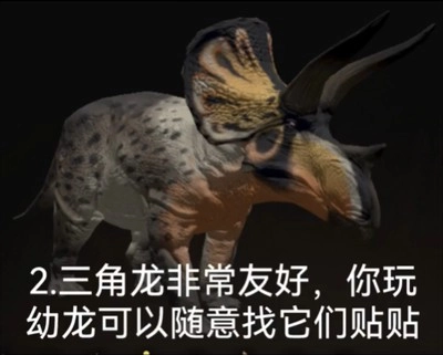 2、三角龙非常友好,你玩幼龙可以随意找它们贴贴