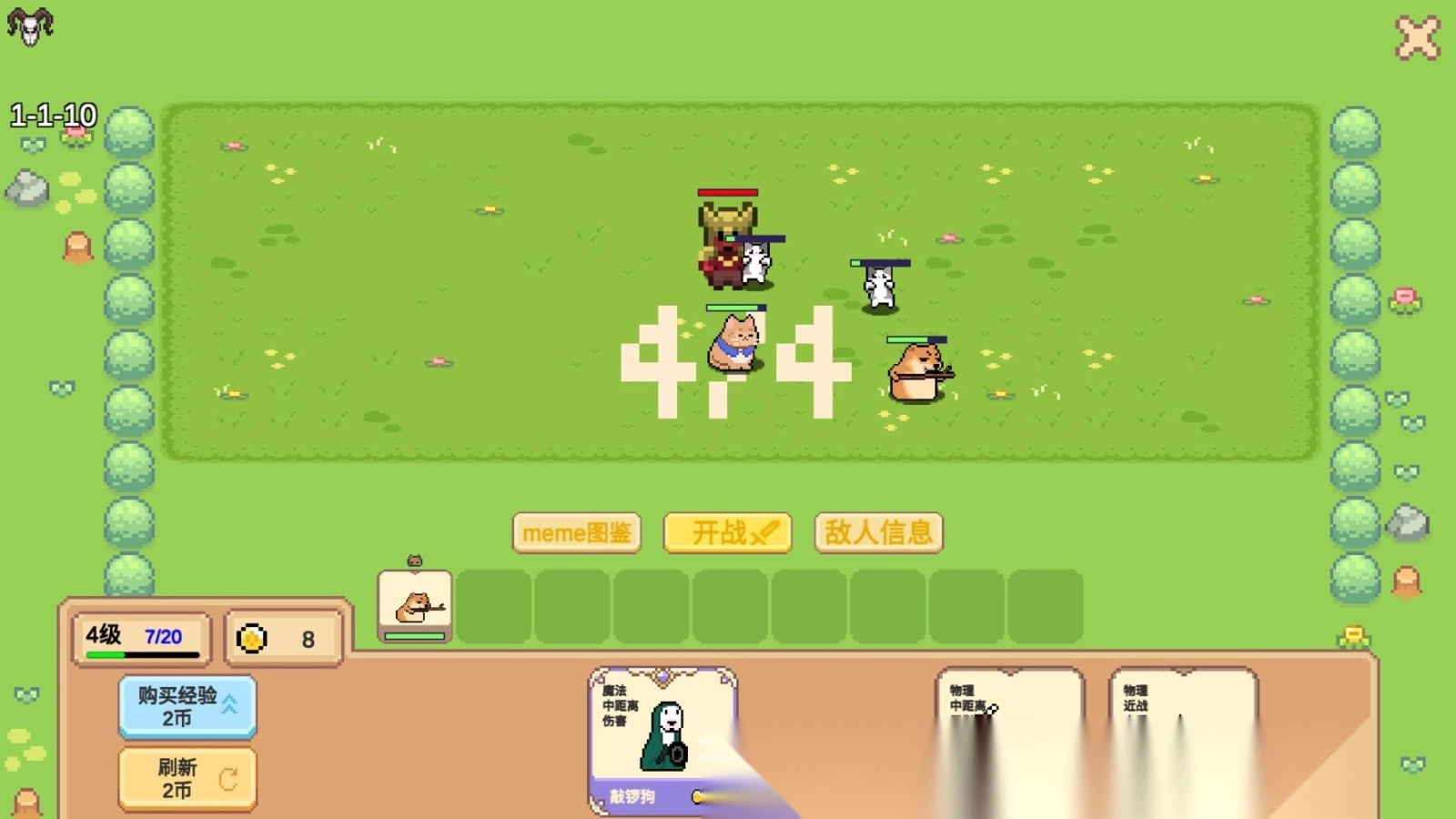 2. 花费金币购买角色,放置卡牌,点击开战。