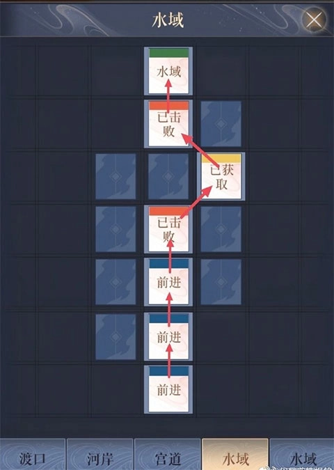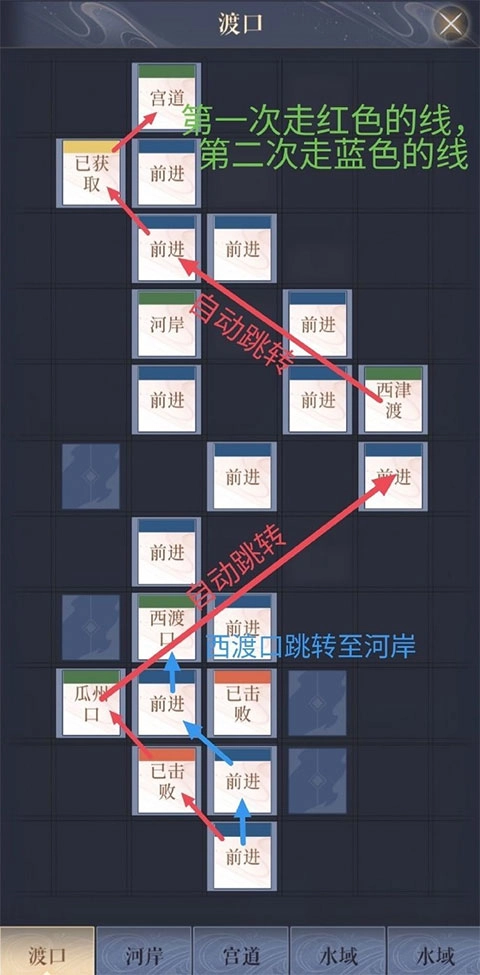 首次沿着红色的线行进,能获取四张地图碎片,之后还可再进入一次。