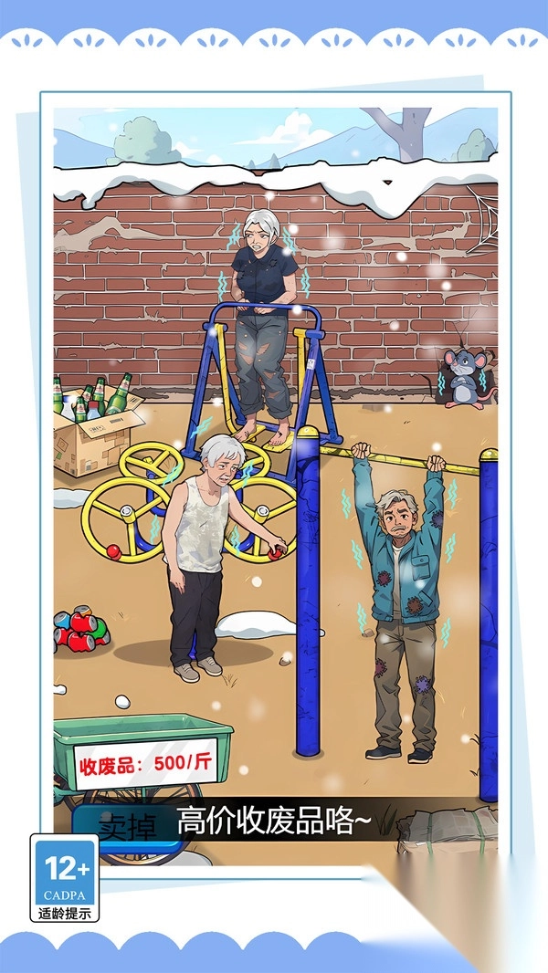 1、观察场景,找违和物品或可互动点,点击触发解谜,比如废品场卖瓶子换钱。