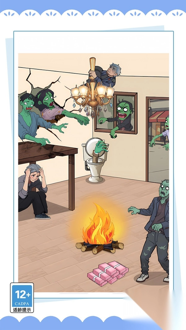 1. 当碰到僵尸屋时,协助角色躲避僵尸,可以寻找道具堵住破墙、扑灭大火,也能用物品进行反击,以此保障角色存活。
