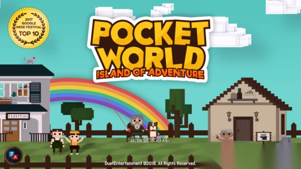1. 启动界面呈现彩虹、房屋及角色,同时提示“正在登录游戏”,并标注开发商与版本信息。