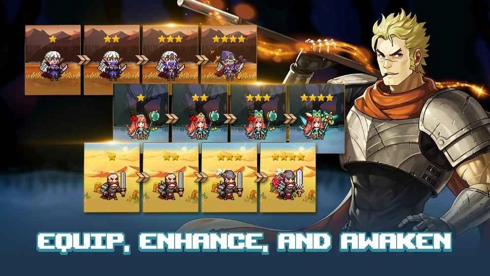 3、打造终极团队,邀请你在旅程中邂逅的冒险家们加入你的队伍。无论是尊贵的骑士,还是身手敏捷的弓箭手,亦或是充满神秘色彩的巫师。