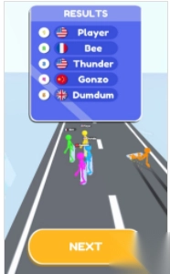 3、比赛结束看【RESULTS】,确认排名后点【NEXT】,进入下一轮,或解锁新角色赛道。