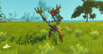 在与这个生物战斗时,你可以边闪避边后退,并用我找到的方法将手中的大锤扔向它。通过五次击中可以削弱它。总共需要五次命中。当你击败它时,会掉落一条金属腿和一个随机物品。如果你的人数较多,这将非常有效,有时甚至一次攻击就足够了。作为额外提示,在短时间内用水桶对干草机器人泼水可以让它暂时失效,从而为我们争取到一些时间。
