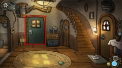 1然后我们回到大厅,点击二楼的楼梯可以上到二楼。接着点击右侧的门。