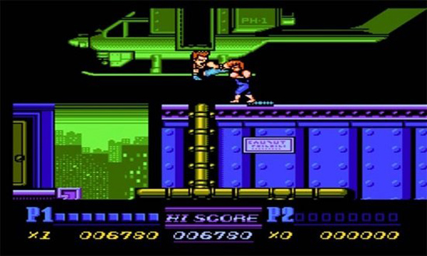 有些难度了,首先,刚一开始对面站着一动不动的小兵就有可能把主角打进大沟,我甚至遇到过主角用旋风脚跳过沟,还没落地就被小兵一拳打进沟里的情况。当然这种失利是少数现象,放心地用基本战术吧。其次,有绿色直升飞机的场景,最好是登上梯子向右边突破,尽管会受伤,但是为了不被子弹打入沟里秒杀,受点伤规避秒杀风险还是值得的。最后就是BOSS战了,两名忍者同时登场,这场战斗可以说是最简单的,也可以说是最艰苦的,简单,是因为忍者善攻不善防,不知道蹲下躲避主角的旋风脚,因此只要主角能站好位熟练地发动旋风脚并且用旋风脚追打倒地的忍者,就胜券在握了;艰苦,是因为忍者善攻,主角一旦被忍者打倒就很难站起身反击了,被忍者打得东滚西爬找不着北是司空见惯的事情。因此,旋风脚是取胜的关键。忍者BOSS血量不及第一关,简单难度下2格;普通难度下3格;困难模式下4格。
