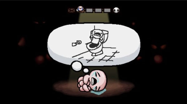 角色永久死亡,此设定通常是一款游戏给予玩家最为严苛的惩处。在《以撒的结合:重生》里,这种惩罚达成了一个难能可贵的平衡点,其如弹幕般的难度,对玩家而言并非惩罚,而是一次新奇探索的契机。由于游戏具备随机化内容以及无穷无尽的搭配组合,尽管操作机制仅是简单的双摇杆设计,然而玩了30小时之后,玩家依旧能见识到新的物品、boss以及地下城类型。笔者常常会在游戏过程中暂停片刻,去感受自己所操控的这个角色。这是个遭受精神创伤的光屁股熊孩子,他要去消灭大便怪与僵尸婴儿,武器竟是自己的眼泪,只因他的妈妈发疯了,企图杀害他。