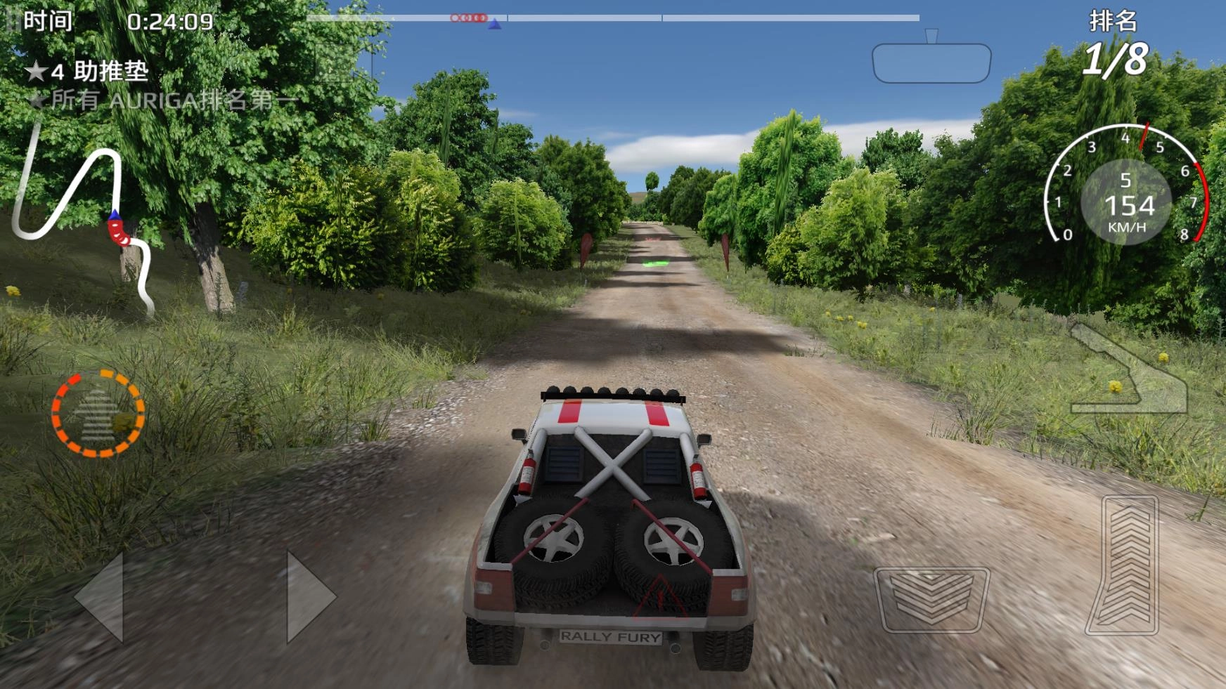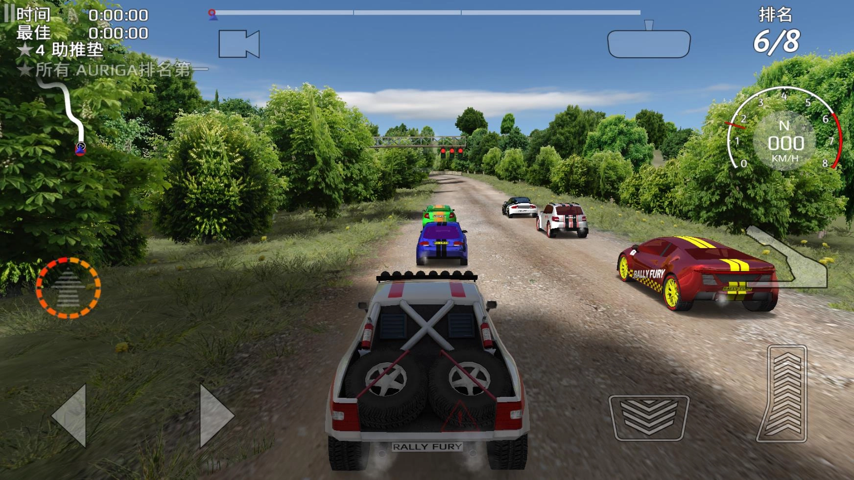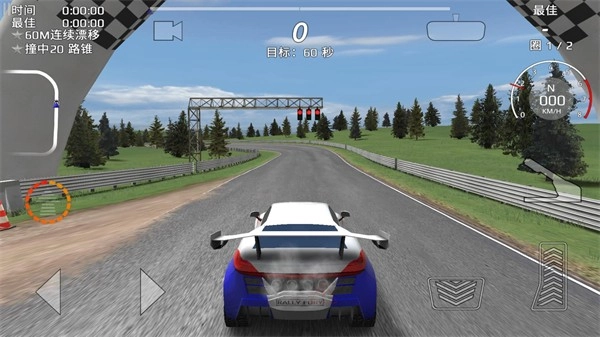 4、进入关卡后左边控制车辆的转向,右边是油门、刹车和手刹按钮,左边的圆圈按钮是氮气加速。