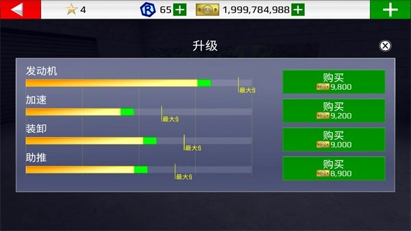7、点击升级按钮可以消耗金币对车辆的属性进行升级。