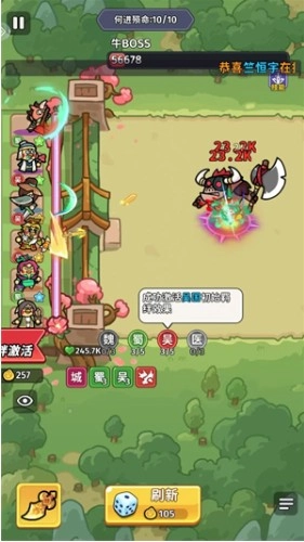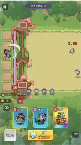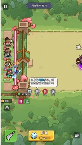 在每场战斗开启前,你可以点击【刷新】按钮来召唤武将。届时,系统会随机生成三位英雄供你挑选,而能否合理搭配阵容,是取得胜利的关键所在。