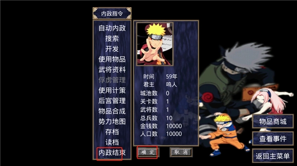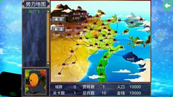 1. 游戏开局时,选择最下方的辉夜姬角色。该角色对应的君主拥有一千多的武力值,选用辉夜姬来玩,取胜的把握较大,要是有足够耐心,完全能够实现统一天下的目标。