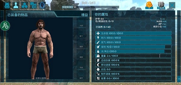 5、你能够查看自身属性,像生命值、耐力、食物量、水量等。务必时刻留意自身属性,否则或许会致使游戏失败。