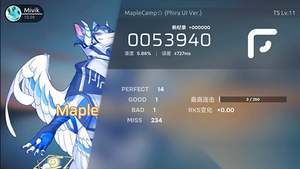 点击“游玩”,在选曲界面中点击歌曲既可来到游玩界面,如下图: