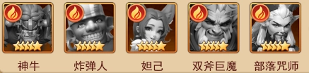 【神牛+炸弹人+妲己+双斧巨魔+部落咒师(通关利器)】