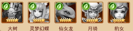 【大树+灵梦幻蝶+仙女龙+月骑+豹女(攻守兼备)】