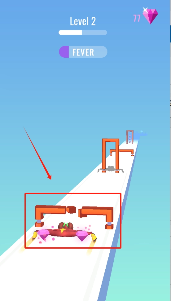 3、动躲避橙色障碍物,利用特效冲刺,保持FEVER状态冲刺到终点。