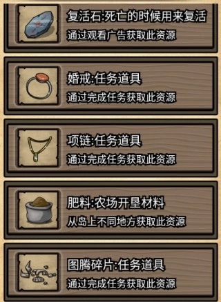 4、复活石、婚戒、项链、肥料、图腾碎片;