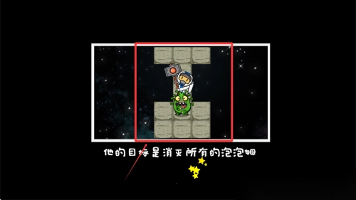 1、玩家需要控制角色推动箱子,同时消除挡路的泡泡,通过巧妙的操作找到通往终点的路径。