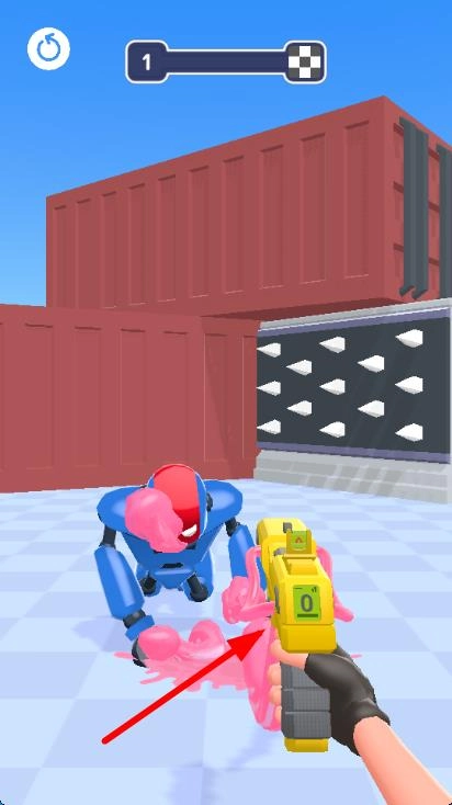 1、进入游戏后选择关卡,通过滑动屏幕调整角色视角,瞄准前方出现的敌人,点击射击按钮完成基础攻击操作。