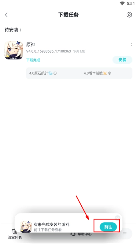 4、最后游戏下载完成后,点击前往安装即可。