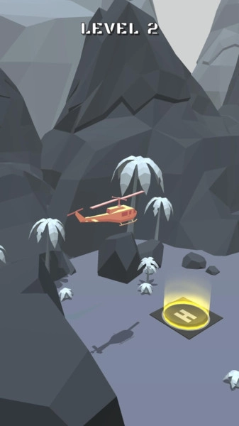 2. 在地形环境里操控摇杆穿梭前行,实现精准降落实施救援,进而完成关卡。