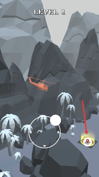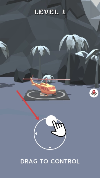 1. 通过拖动控制盘让直升机起飞,朝着目标点发光的救援标识飞去。