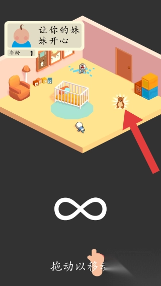 1. 展现育儿场景,任务设定为“让你的妹妹开心”。在游戏里,你可以通过拖动操作(会有“拖动以移动”的提示)来移动物品,以此完成互动,这属于游戏中模拟生活、照顾家人的玩法部分。