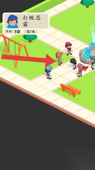2、展现“打败恶霸”的任务场景,其中角色设定为10岁。这一玩法环节处于模拟成长、完成事件任务的进程之中,着重呈现童年时期在公园与恶霸周旋的情节。