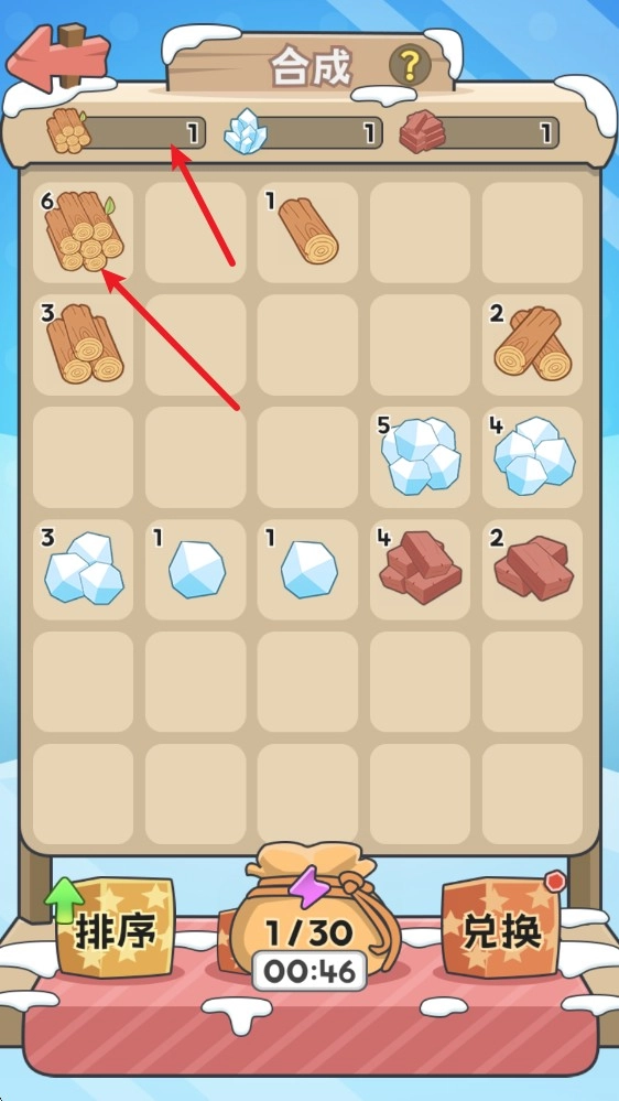 4、通过合成得到6级的材料后,就可以收集起来了。