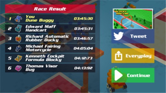2、方块卡丁车玩家可以驾驶自己的赛车进行比赛,玩法丰富。
