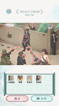 3.那么这里我们要在规定的时间内找到10个主角光环。下面红圈的就是小编找到的主角光环;