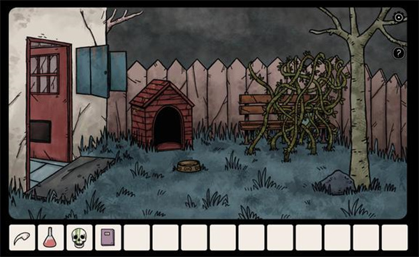 4、在后院拿走树根处的铁铲,然后到车库用其打开架子上的颜料罐拿到钥匙。