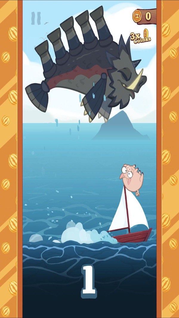 火腿在甲板上是一款有趣的休闲益智游戏。游戏中有一艘小船和一头猪。小猪不能长时间待在船上,否则船会下沉,因此它需要借助海里的鱼跳跃来完成多次空中跳跃。玩家需操控小猪的跳跃与方向,在恰当的时机跳到鱼背上,从而再次跳跃并连续得分。只有帮助小猪成功获取食物,才能完成挑战,并赢得更多奖励。