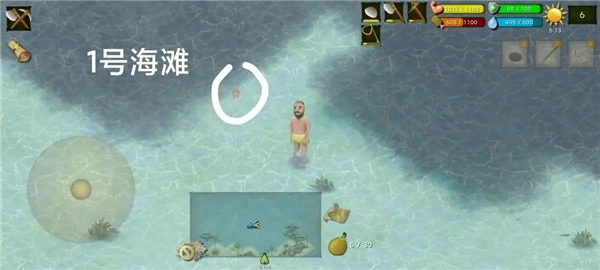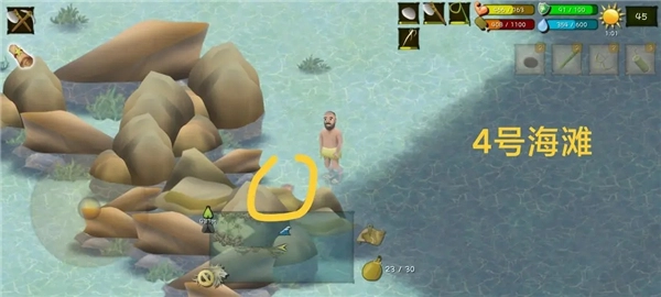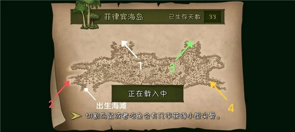 出生后物资主要捡石头片,藤蔓和椰子,建完石头房子再进行大收集。位置推荐1号海滩垂直向下中间的位置(有很多坑的那块地,种植很方便),这个图比较长,可以做两个家