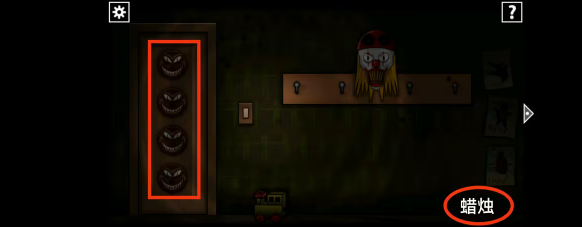 进入小丑头像房间拿走地上的蜡烛,根据红色书籍里的提示(月亮朝向)调整门上的笑脸即可,暂时缺少关键道具先不进去。