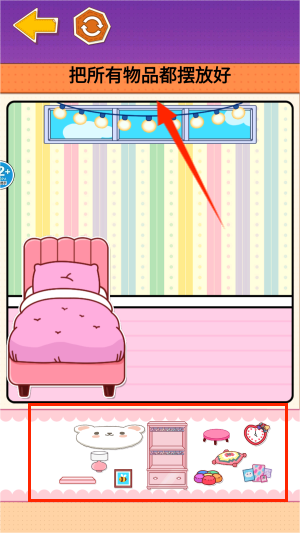 3、长按底部工具栏中的物品,将其拖拽至书架或桌面的指定区域。当所有物品归位后,会触发特别动画效果并计算最终得分。