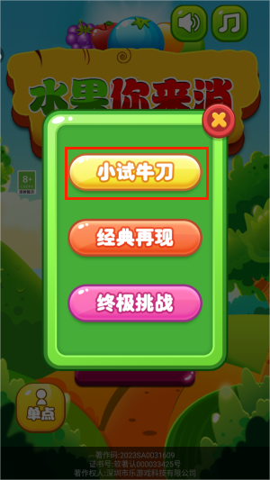 2、进入游戏后,有多个难度模式,新手可以选择:小试牛刀,开始闯关。