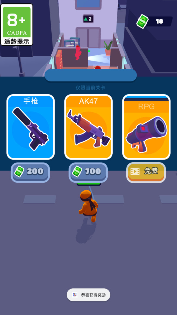 2. 在每一关卡开始之前,玩家可以选择不同的武器。这些武器的价格和攻击力各不相同,选择合适的装备将有助于顺利完成潜行刺杀任务。